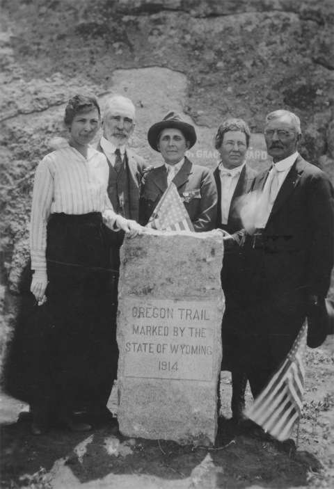 The location debate didn’t always end once the marker was erected. Certainly, two markers Natrona County received in 1914 did not stay where they were initially set. E. Richard Shipp received one marker from the commission, which he placed east of Bessemer Canyon on the road to Alcova, several miles south of where the trail actually went. That same year, Emily Patten, who was serving as the secretary of the commission and State Regent for the Daughters of the American Revolution, wrote to Shipp’s wife, Dickie Letitia Wright Shipp, a fellow Daughter in Casper, “I read in the Tribune recently that some people are dissatisfied with the location of the Oregon Trail posts. Will you tell me about it? The State Engineer, Mr. A.J. Parshall is the one to settle all differences in the location of posts and monuments.”[1]